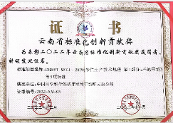 奖项名称及等级:云南省标准化创新贡献奖 | ||